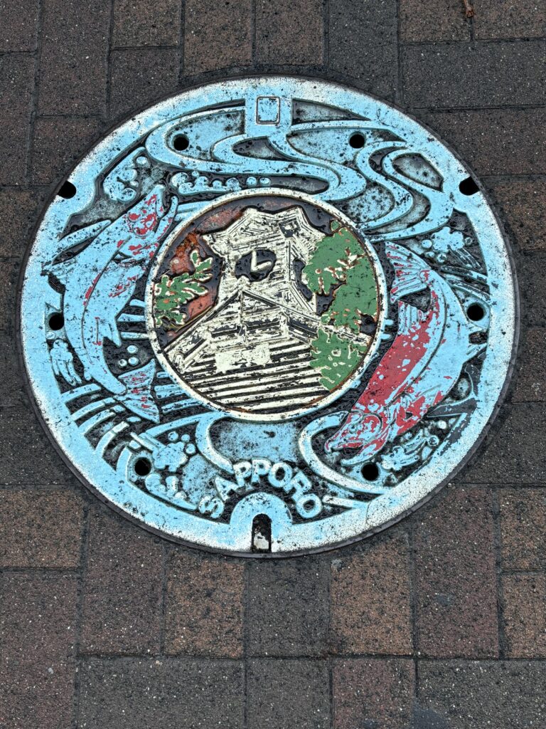 内部は以前見ているため「来た証拠」に写真だけ撮影。時計台がデザインされたマンホールが可愛かったのでついでに撮影。