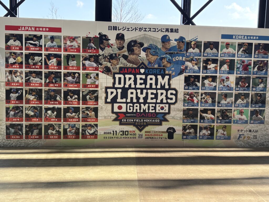 こんにちはみのむしチャンネルです。2025年11月30日 エスコンフィールド北海道に日韓OB戦(日韓ドリームプレーヤーズゲーム2025)を観戦してきましたので投稿させていただきます。