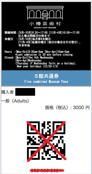 5館共通券は先ほど紹介した小樽芸術村公式HPのサイトから購入可能です→公式オンラインチケット
