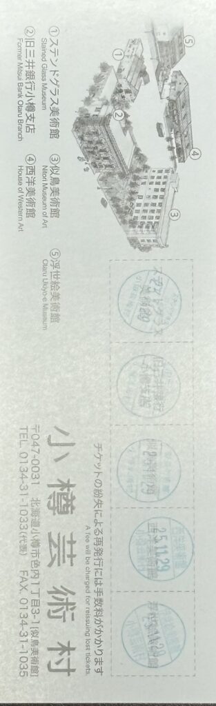 日本でも指折りの観光地北海道小樽市に行って来ました。主な目的は小樽市内にある5つの美術館巡りです。チケット購入から見どころ・感想などをレポートしてみたいと思います。ちなみに今回小樽市に向かったのは2025年11月下旬です。